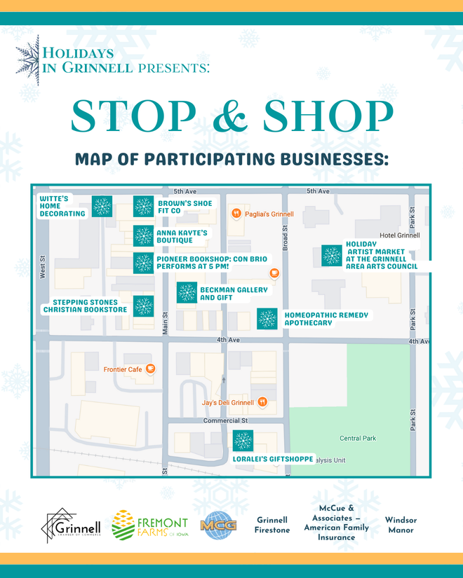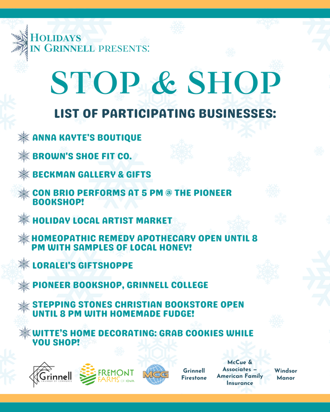 Welcome to the Holidays in Grinnell! Holidays in Grinnell, hosted by the Grinnell Area Chamber of Commerce, is a series of events scattered throughout the holiday season. After the Chamber's Jingle Bell Holiday, the fun continues! Check out our Holidays in Grinnell special edition of the newsletter for more information, events, and reminders that will make your holiday season as smooth as snow!